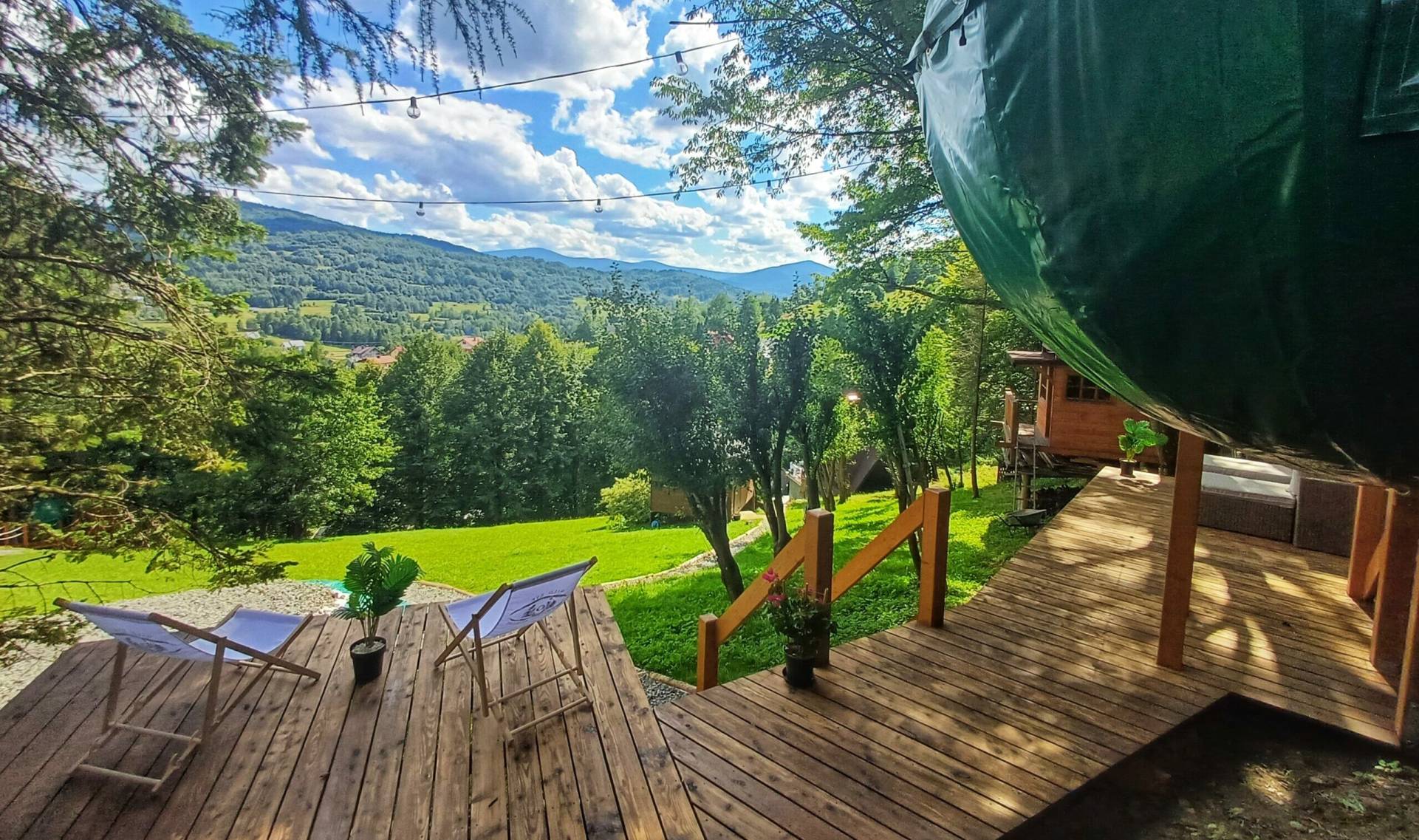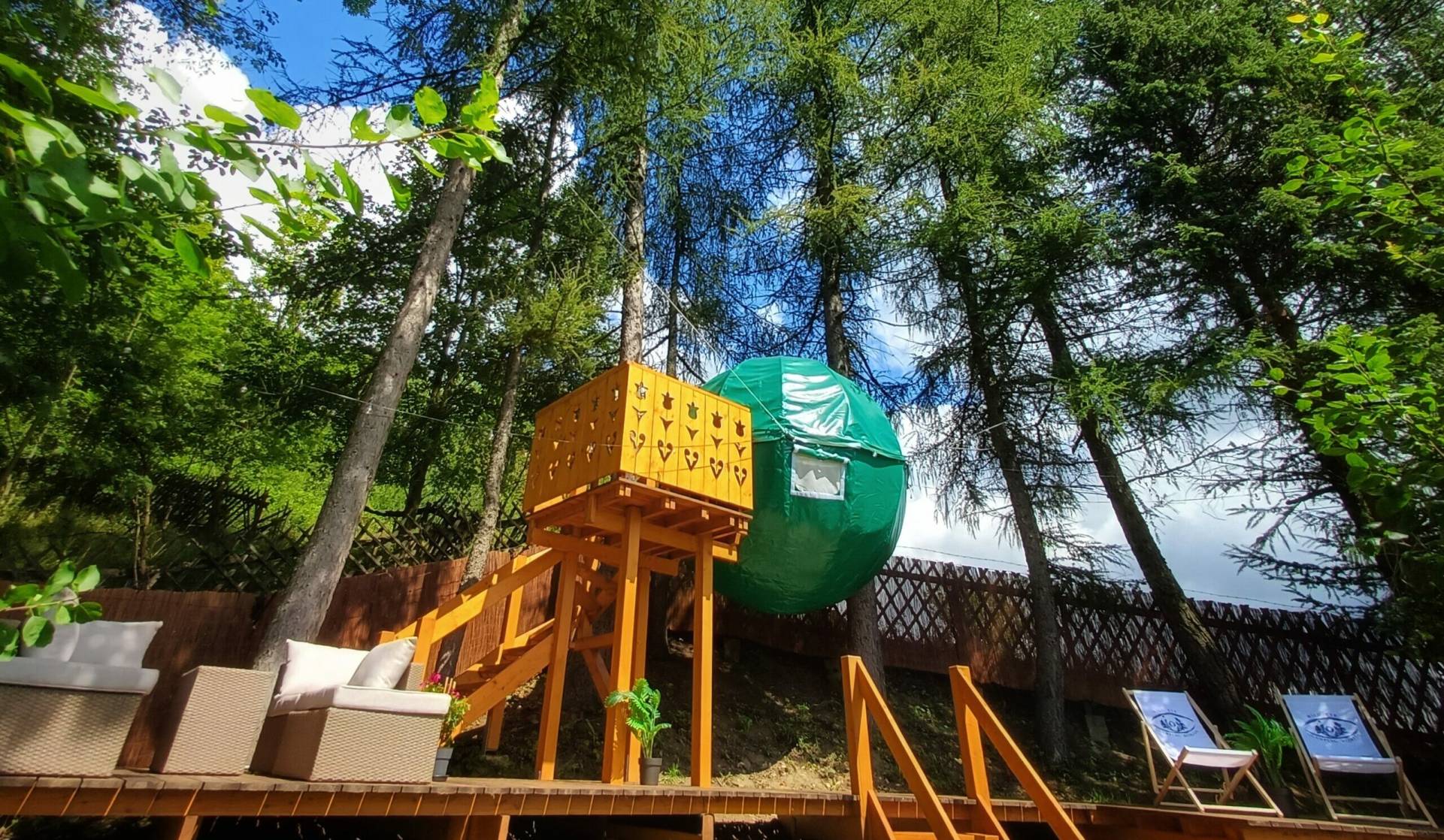 Otulone zielenią i ukryte wśród gałęzi - magiczne schronienie dla tych, którzy pragną zasnąć bliżej nieba i obudzić się w ramionach natury.